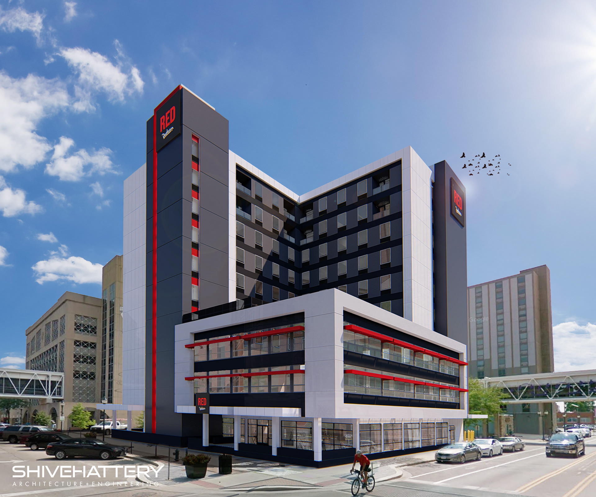 This 10 story building replaces surface parking in a newly revitalized downtown. With 2 stories of offices, ground floor retail, 5 stories of hotel suites, and 2 stories of lofts, this building will help to ensure the downtown continues to thrive for years to come.